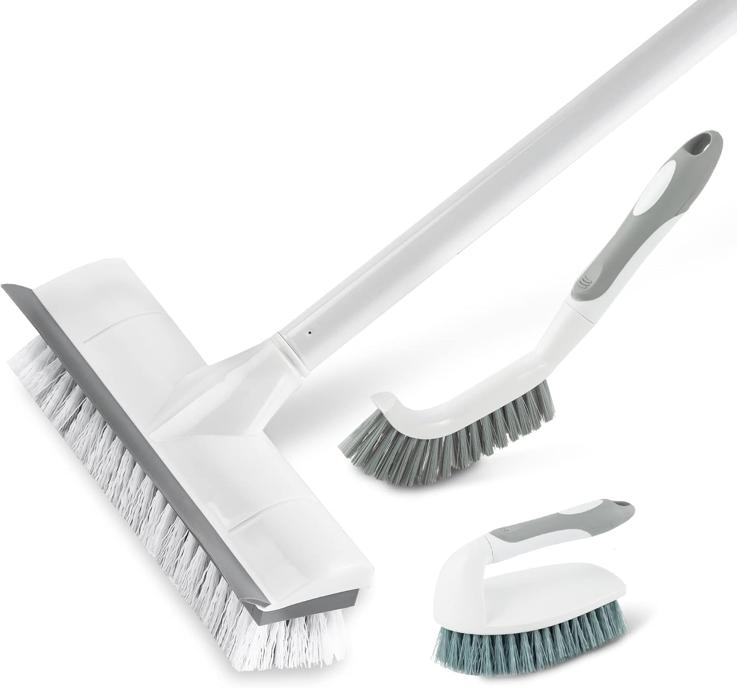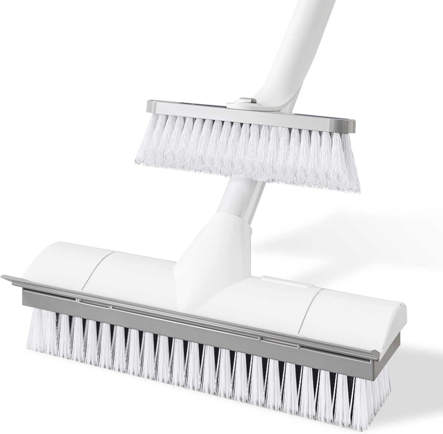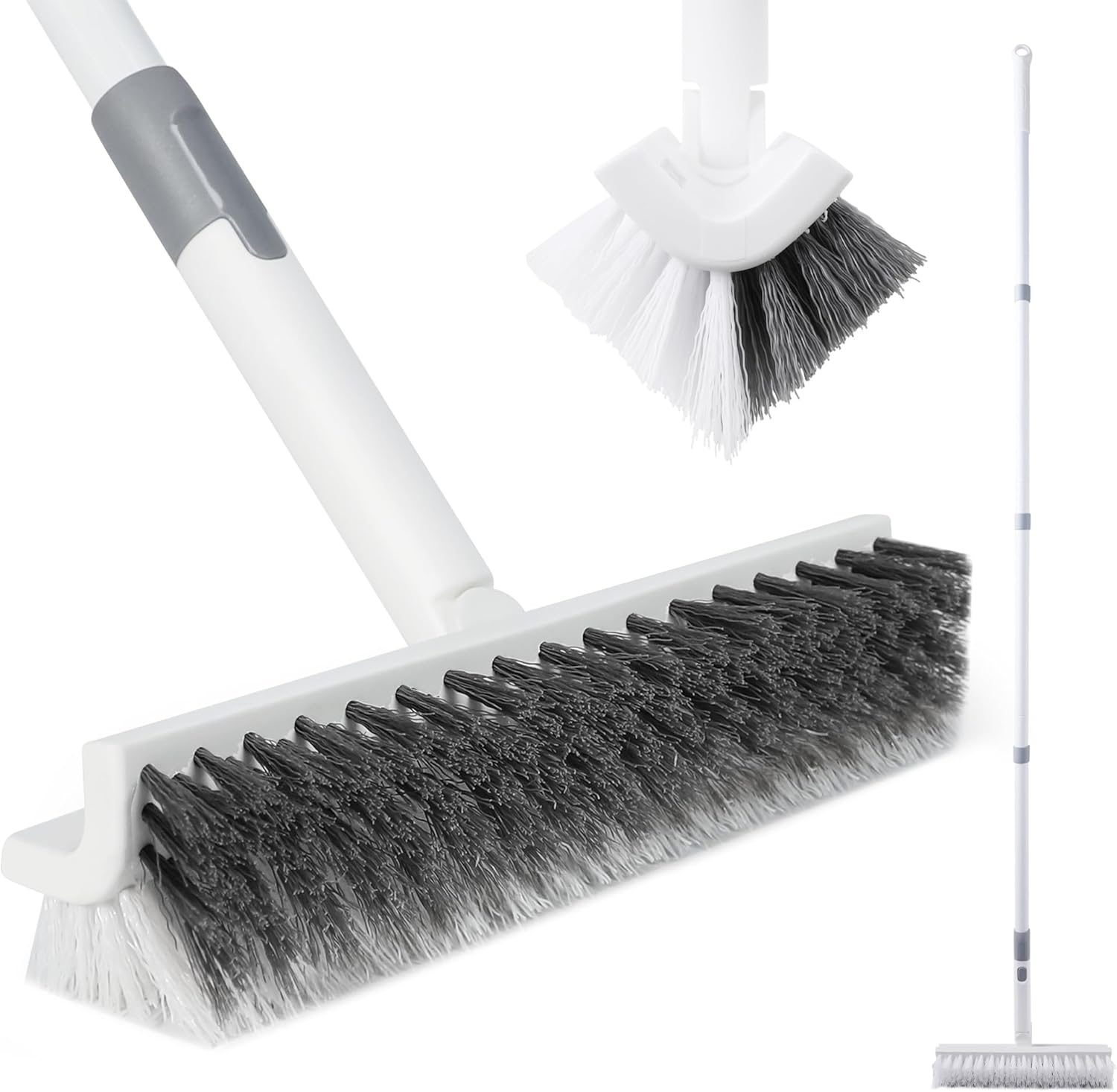 BOOMJOY Floor Scrub Brush with Long Handle, 2 in 1 Scrape and Brush, Stiff Bristles Floor Scrubber, Deck Brush for Cleaning Bathroom, Patio, Garage, Kitchen, Bath, Tile