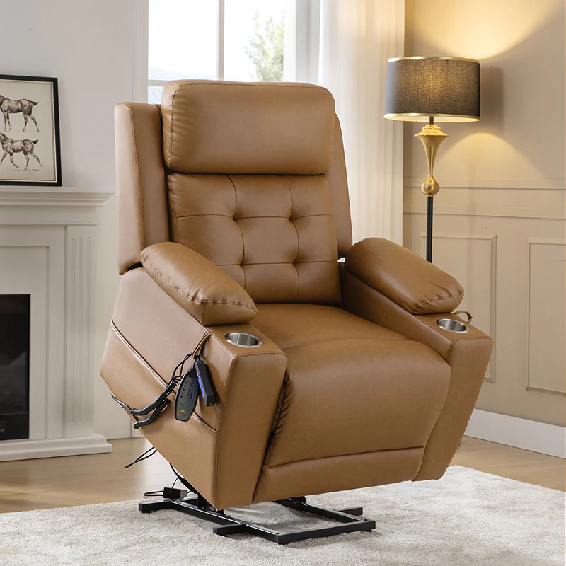 3-Position Power Lift Chair with Heal and Massage Real Leather